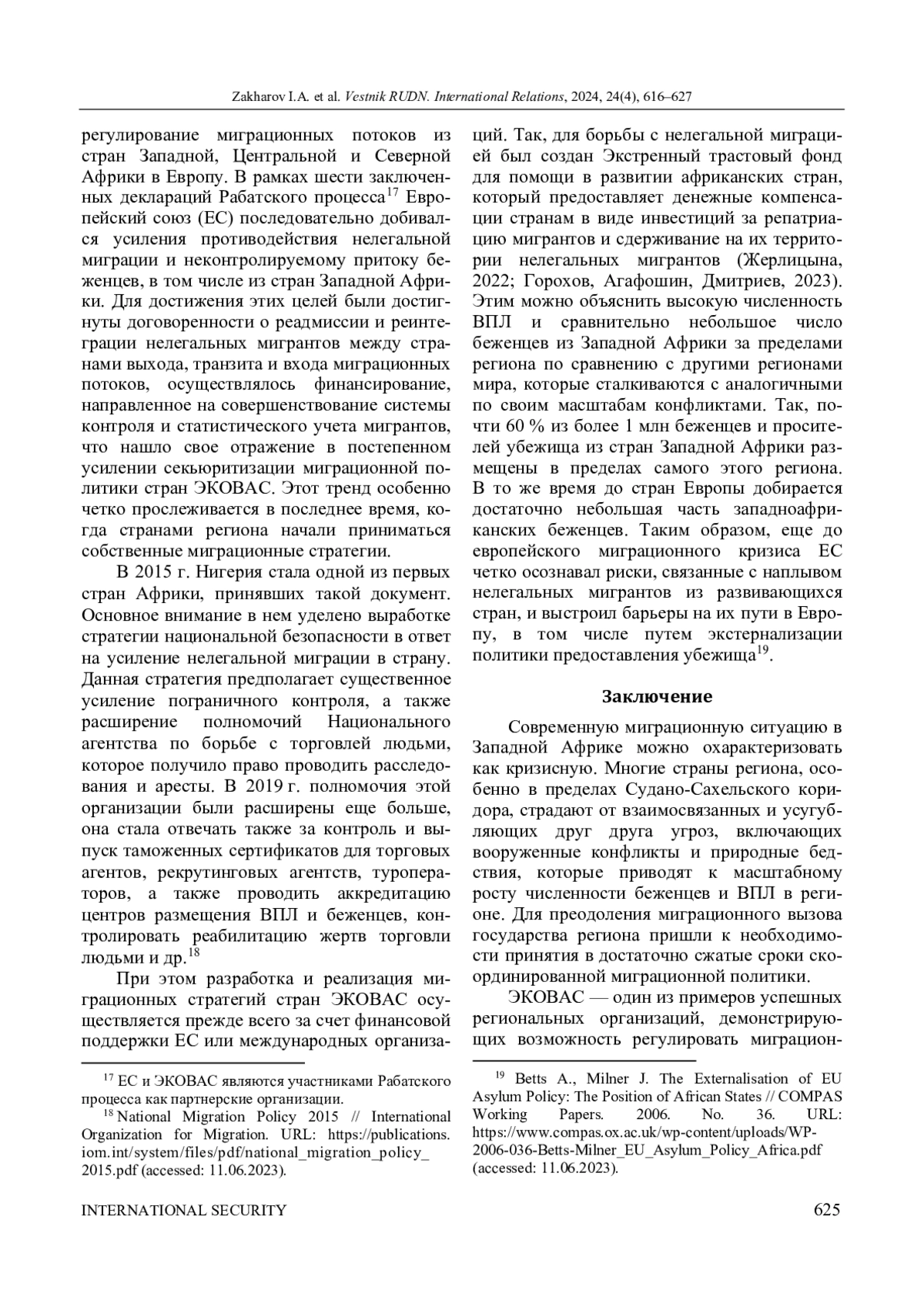 19. Aniche E. T., Iwuoha V. C., Isike C. Whither the ECOWAS Free Movement Protocols? Pandemic Nationalism, Borders, and Migration in West Africa // Political Geography. 2022. Vol. 99. Art. 102771. DOI: 10.1016/j.polgeo.2022.102771 EDN: TTKWSD