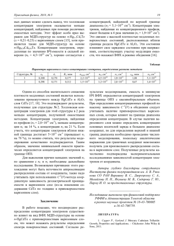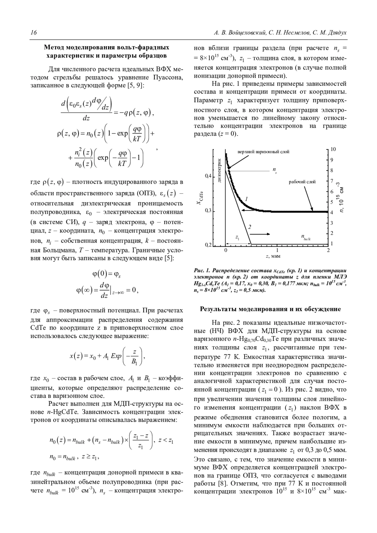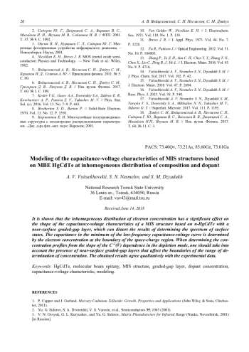 Моделирование вольт-фарадных характеристик МДП-структур на основе МЛЭ HgCdTe при неоднородном распределении состава и легирующей примеси Войцеховский А. В., Несмелов С. Н., Дзядух С. М. 15