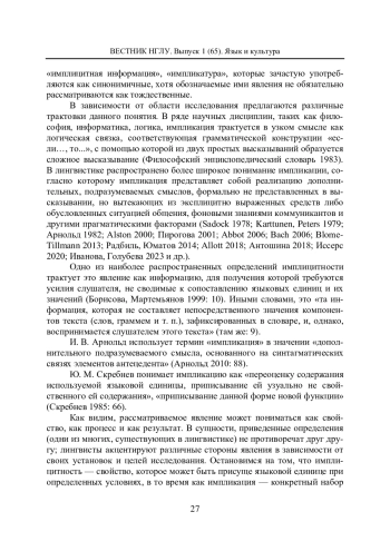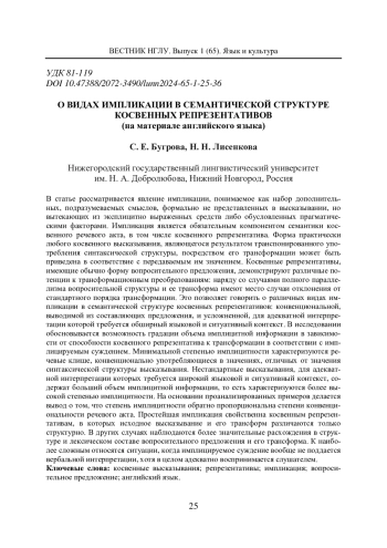 Статья: О ВИДАХ ИМПЛИКАЦИИ В СЕМАНТИЧЕСКОЙ СТРУКТУРЕ КОСВЕННЫХ РЕПРЕЗЕНТАТИВОВ (НА МАТЕРИАЛЕ АНГЛИЙСКОГО ЯЗЫКА) (2024)