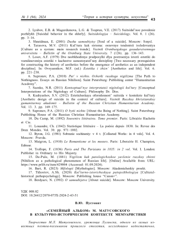 Статья: ФЕНОМЕН СУИЦИДА В КОНТЕКСТЕ ТРАНСФОРМАЦИИ РОМАНТИЧЕСКОГО МИФА (2024)