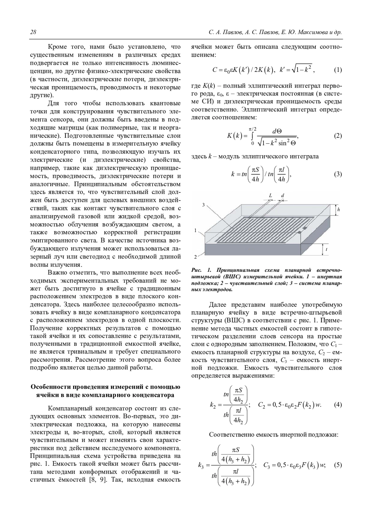 The use of quantum dots based on CdSe / CdS / ZnS in coplanar capacitive structures for optical sensors liquid and gas environments S. A. Pavlov, A. S. Pavlov, E. Yu. Maksimova, A. V. Alekseenko, A. V. Pavlov, and E. M. Antipov 27