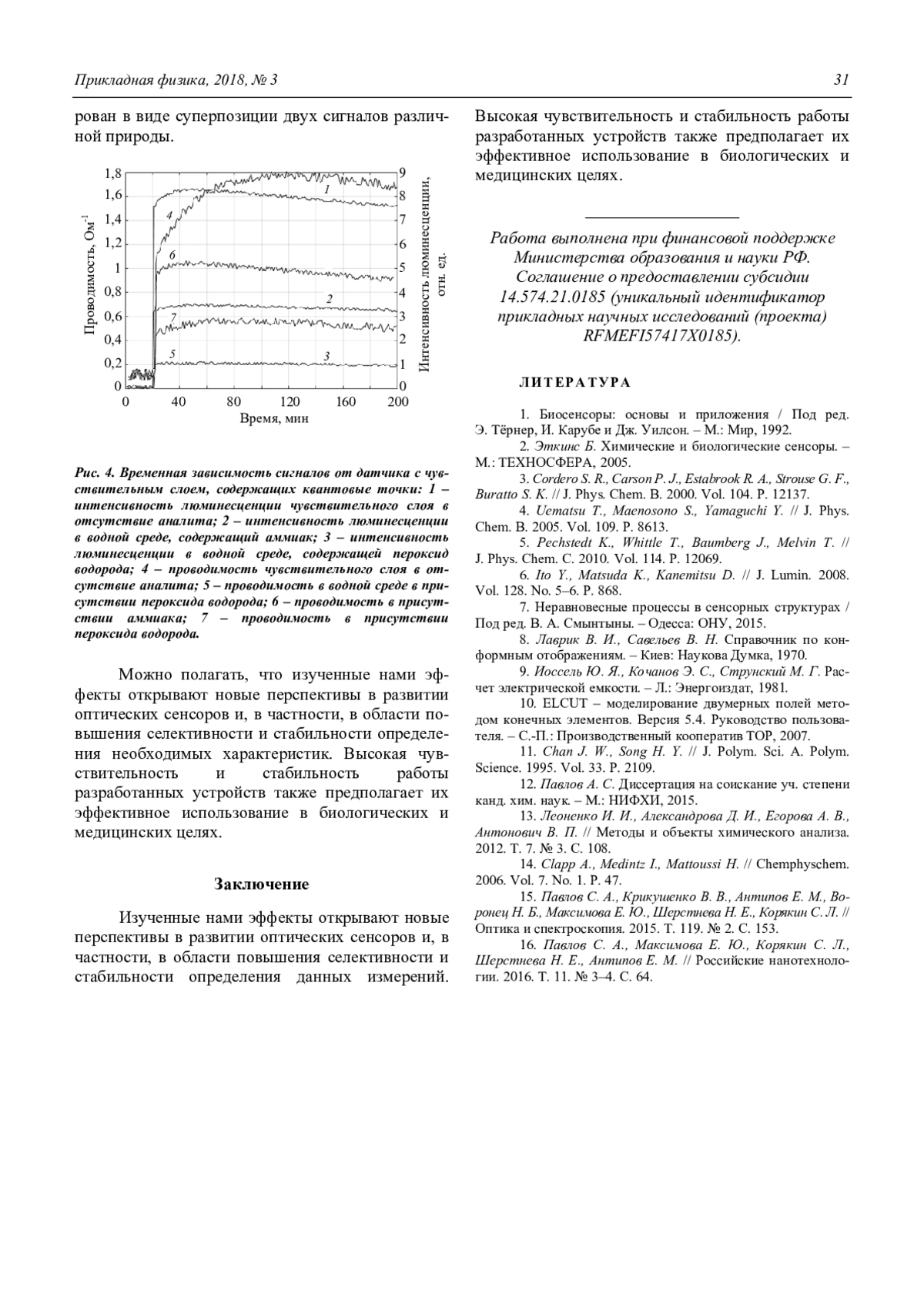 Использование квантовых точек на основе CdSe/CdS/ZnS в компланарных емкостных струк-турах для оптических датчиков жидких и газовых средах Павлов С. А., Павлов А. С., Максимова Е. Ю., Алексеенко А. В., Павлов А. В., Антипов Е. М. 27