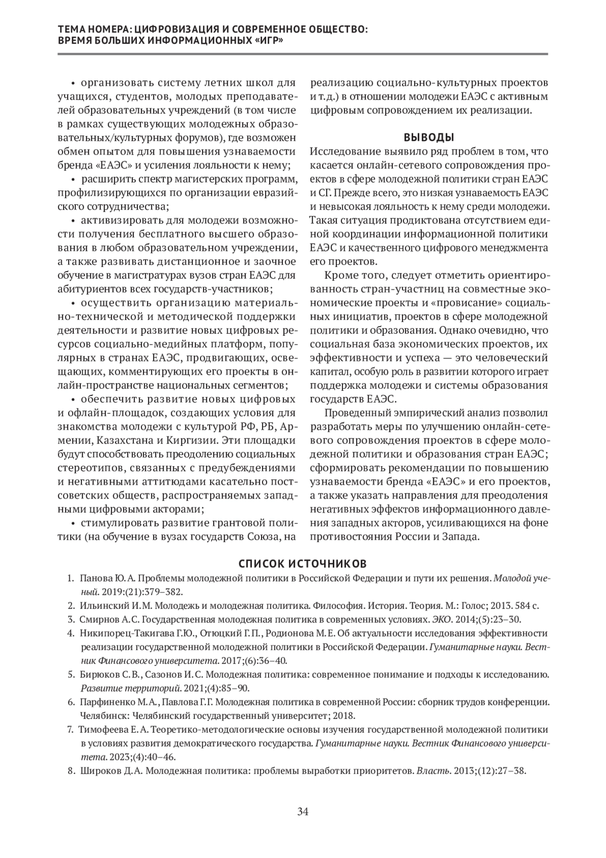 7. Тимофеева Е. А. Теоретико-методологические основы изучения государственной молодежной политики в условиях развития демократического государства. Гуманитарные науки. Вестник Финансового университета. 2023;(4):40-46.