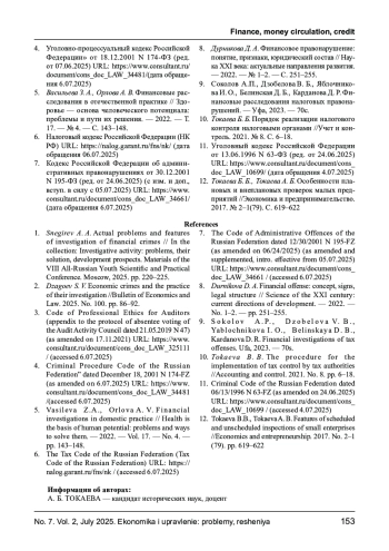 10. Токаева Б. Б. Порядок реализации налогового контроля налоговыми органами //Учет и контроль. 2021. № 8. С. 6-18. EDN: XKQQFO