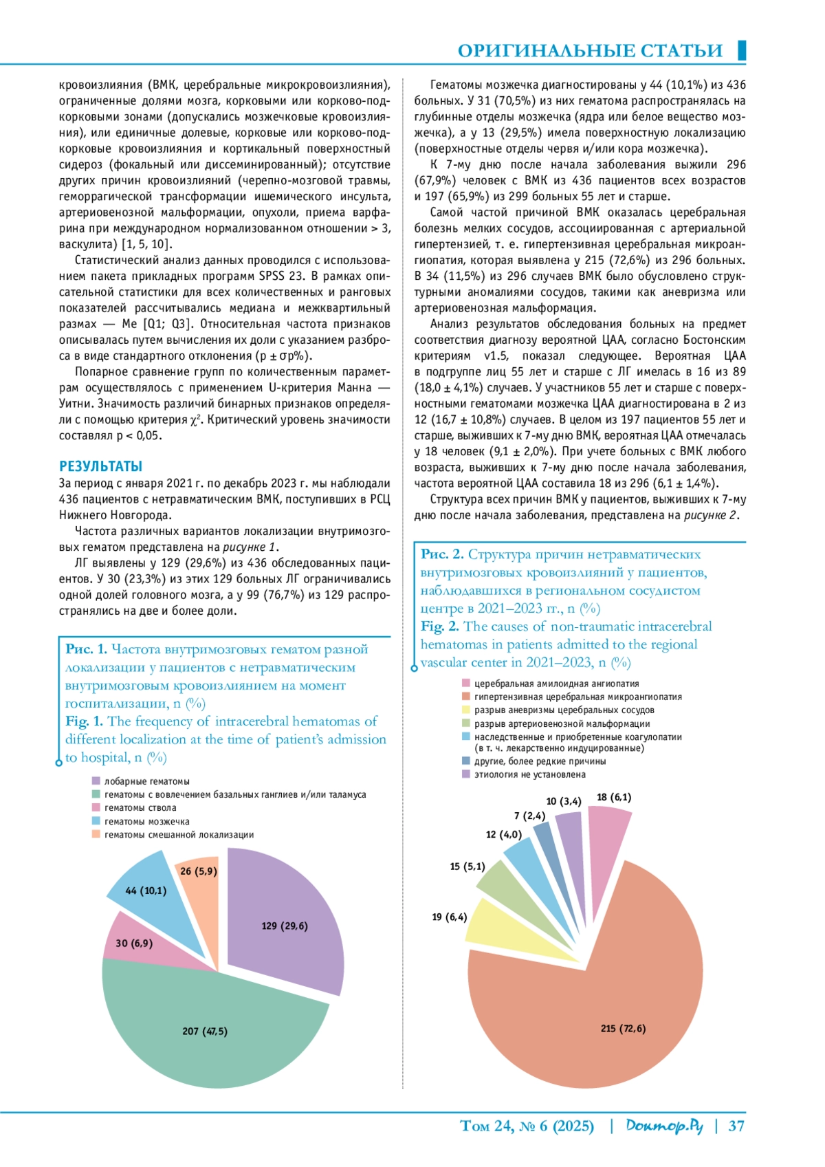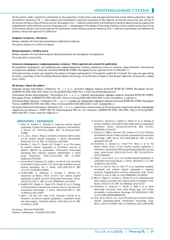 6. Goeldlin M.B., Mueller A., Siepen B.M., Mueller M. et al. Etiology, 3-month functional outcome and recurrent events in non-traumatic intracerebral hemorrhage. J. Stroke. 2022:24(2):266-77. DOI: 10.5853/jos.2021.01823