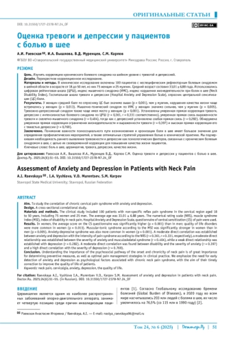 Статья: Оценка тревоги и депрессии у пациентов с болью в шее (2025)