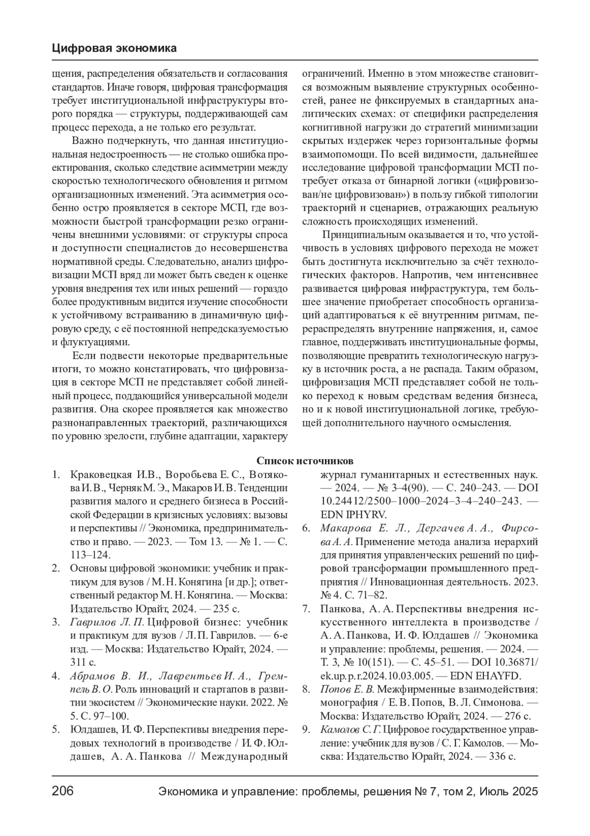 Современные процессы цифровой трансформации, затрагивающие малое и среднее предпринимательство (далее — МСП), не поддаются описанию в рамках единой универсальной модели, что делает необходимым более критическое осмысление происходящих изменений.