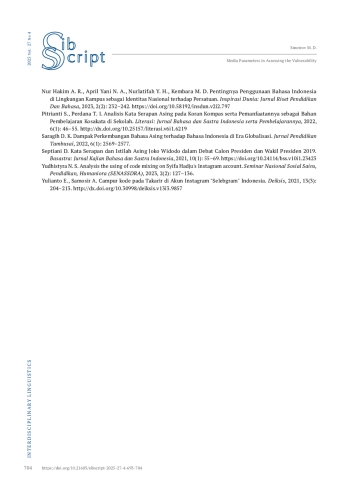 Ключевые фразы: лингвистическая глобализация, ЯЗЫКОВАЯ ПОЛИТИКА, оценка языковой ситуации, ИНОЯЗЫЧНЫЕ ЗАИМСТВОВАНИЯ, индонезийский язык