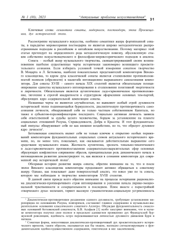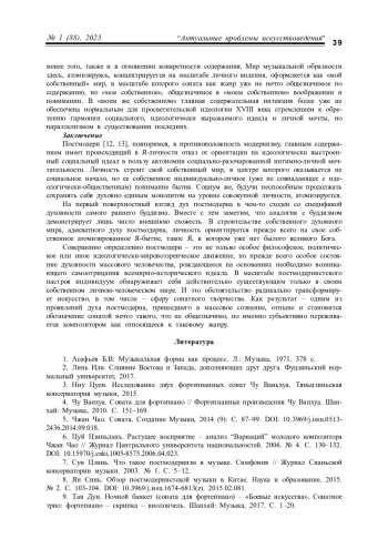Постмодернизм, как адекватный нашей современности строй массового сознания, вполне характеризует не только области идеологии, политики, но также и сферу искусства, в частности – музыкального. Примером тому может служить сонатное творчество китайских композиторов Чу Ванхуа, Чжан Чао и Тан Дуна, исследование которого осуществляется в настоящей статье.