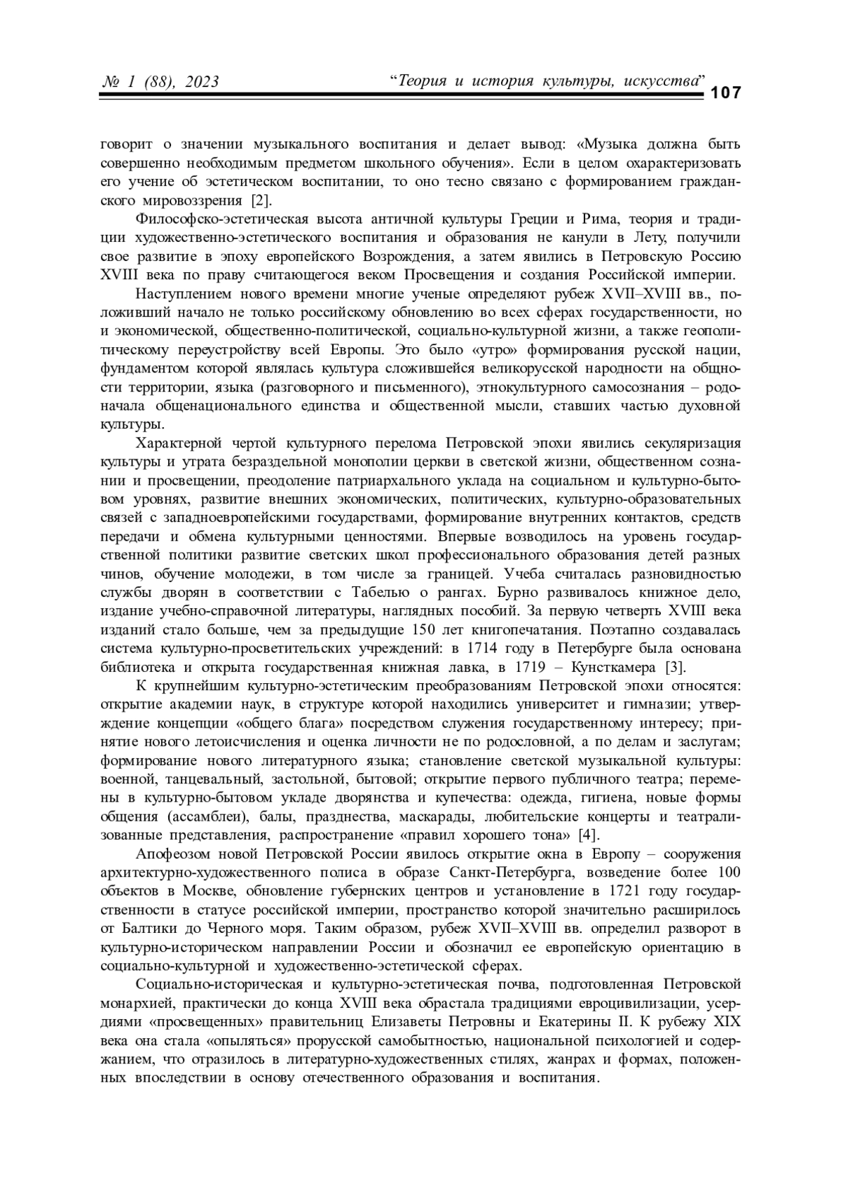 В статье раскрывается самобытная русская идея эстетического запроса людей на социокультурное обновление, предвосхищающее, прогнозирующее и сопровождающее системные социально-исторические перемены в обществе. Данный нарратив автор экстраполирует в проблемном контексте преемственности и непрерывности эстетического освоения действительности на вековых рубежах развития России, начиная с Петровских преобразований и заканчивая парадигмальными общественно-политическими трансформациями начала XX века