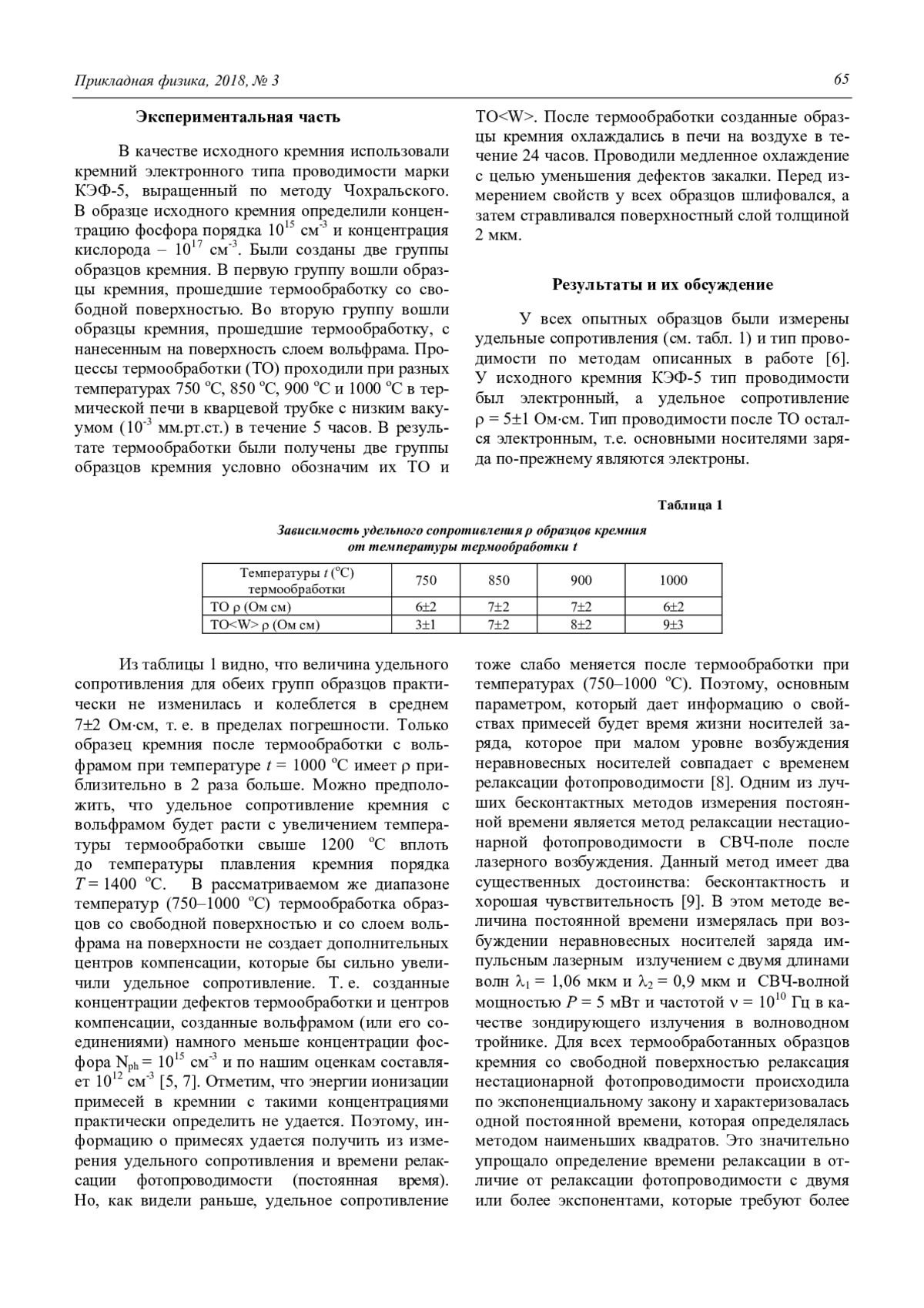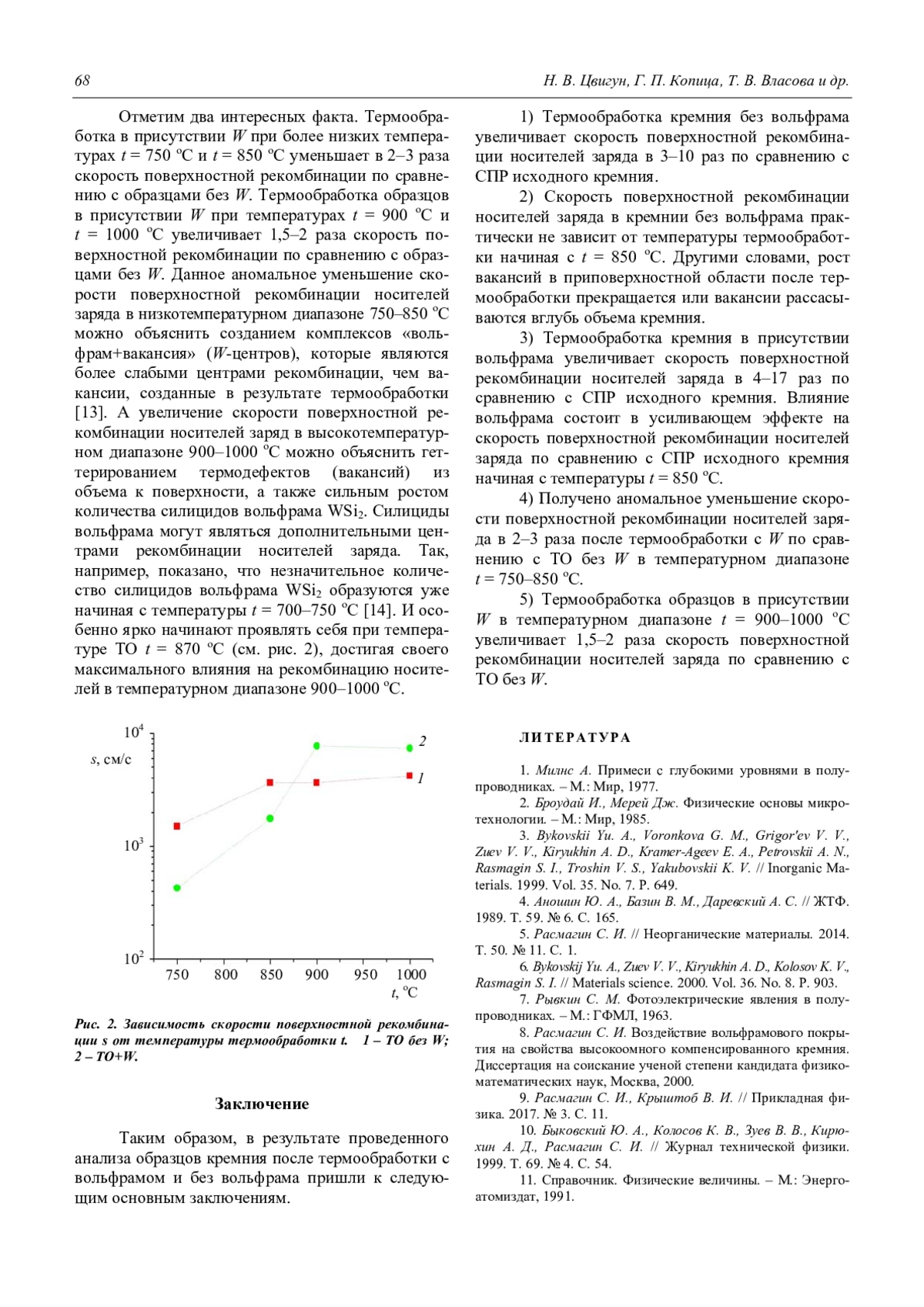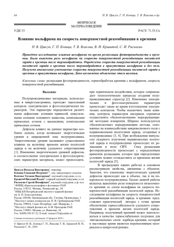 Влияние вольфрама на скорость поверхностной рекомбинации в кремнии Цвигун Н. В., Копица Г. П., Власова Т. В., Крыштоб В. И., Расмагин С. И. 64
