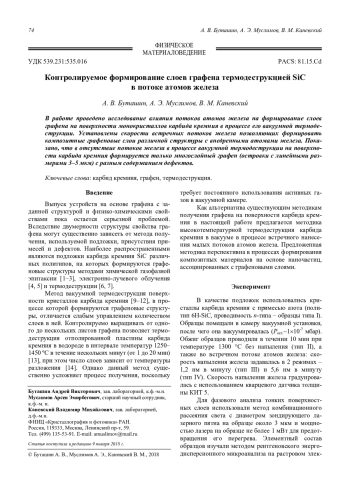 Контролируемое формирование слоев графена термодеструкцией SiC в потоке атомов желе-за Буташин А. В., Муслимов А. Э., Каневский В. М. 74
