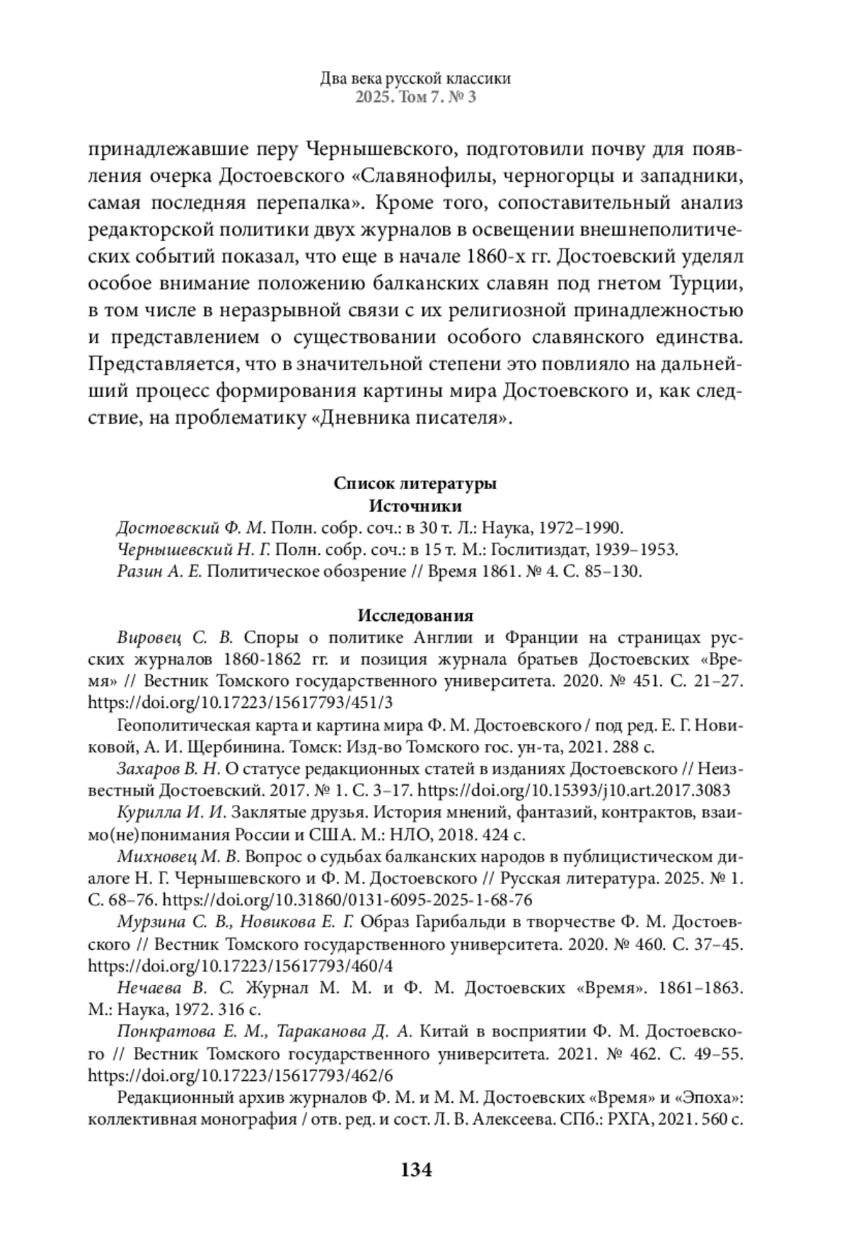 8. Михновец М. В. Вопрос о судьбах балканских народов в публицистическом диалоге Н. Г. Чернышевского и Ф. М. Достоевского // Русская литература. 2025. № 1. С. 68-76. DOI: 10.31860/0131-6095-2025-1-68-76 EDN: KFAQXT