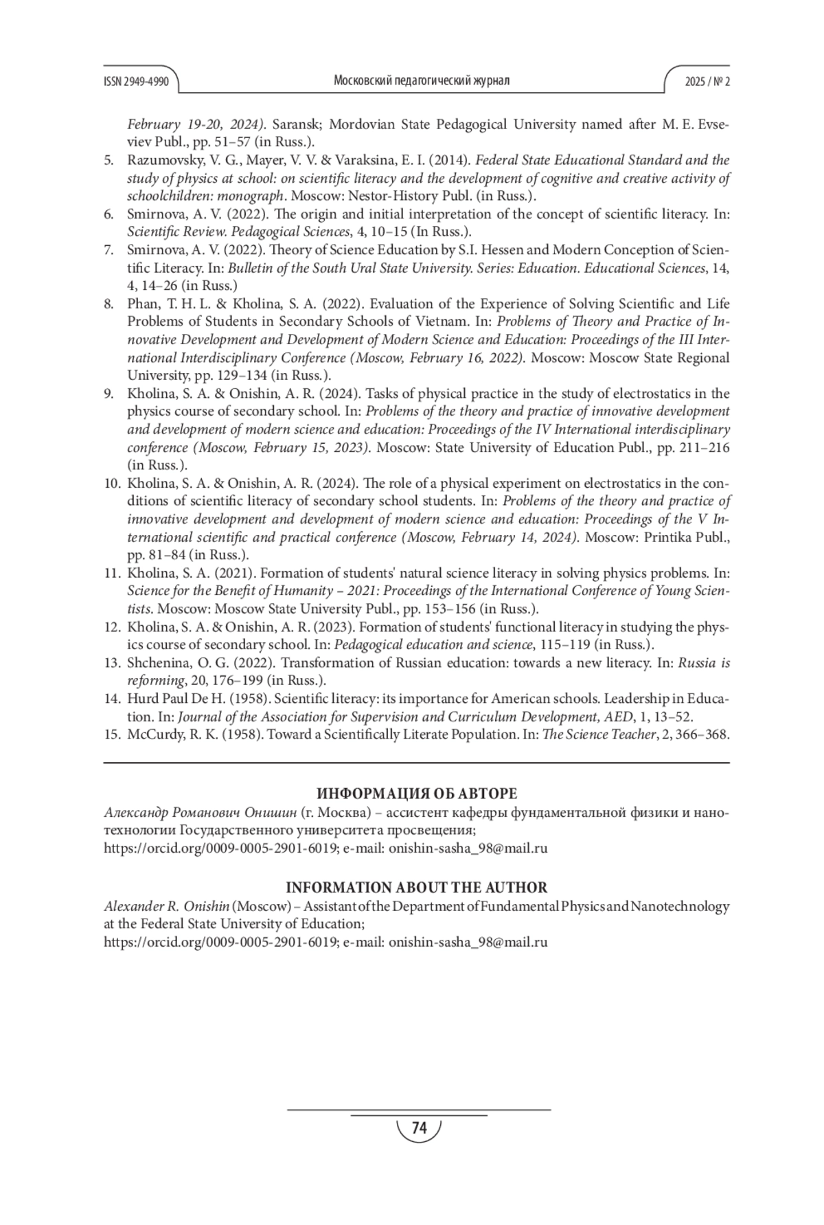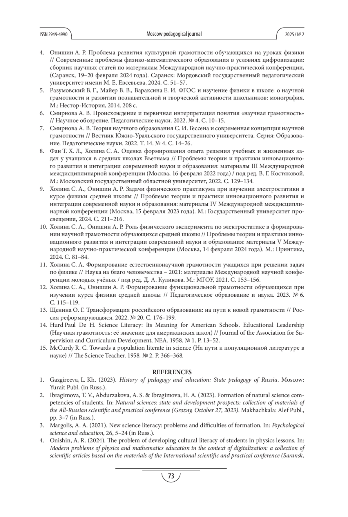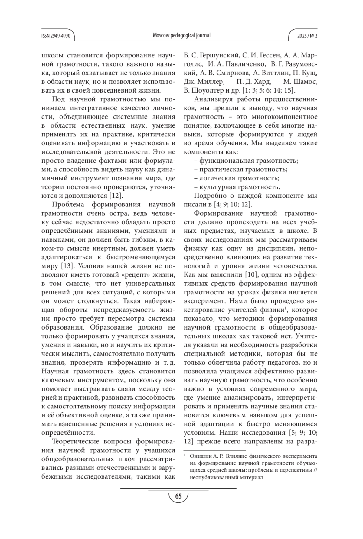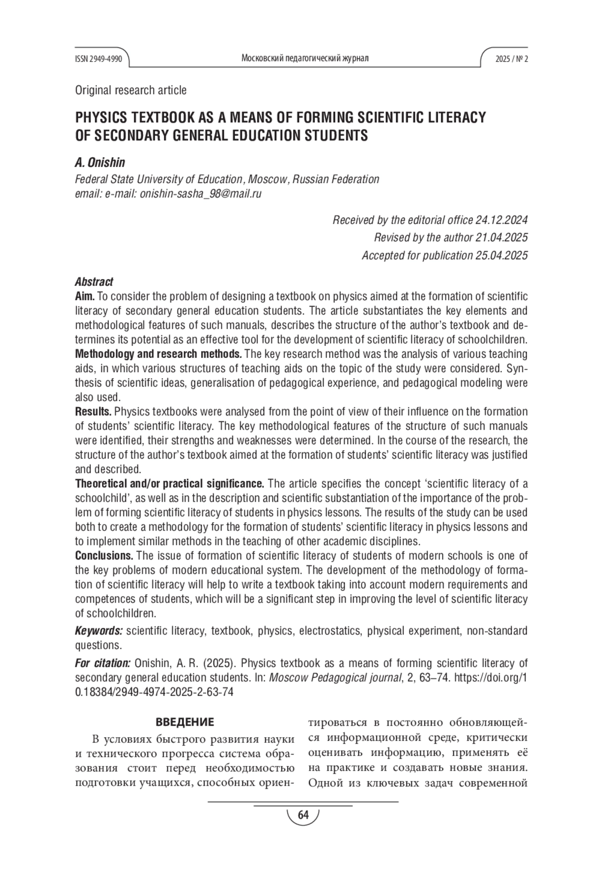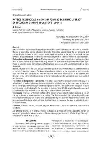 ОНИШИН А. Р. УЧЕБНОЕ ПОСОБИЕ ПО ФИЗИКЕ КАК СРЕДСТВО ФОРМИРОВАНИЯ НАУЧНОЙ ГРАМОТНОСТИ УЧАЩИХСЯ СРЕДНЕГО ОБЩЕГО ОБРАЗОВАНИЯ // МОСКОВСКИЙ ПЕДАГОГИЧЕСКИЙ ЖУРНАЛ. 2025. № 2