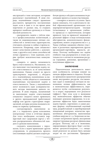 Цель статьи - осветить особенности и принципы личной эффективности преподавателя высшей школы, занимающегося педагогической деятельностью, для выработки оптимального сценария защиты от профессионального выгорания.