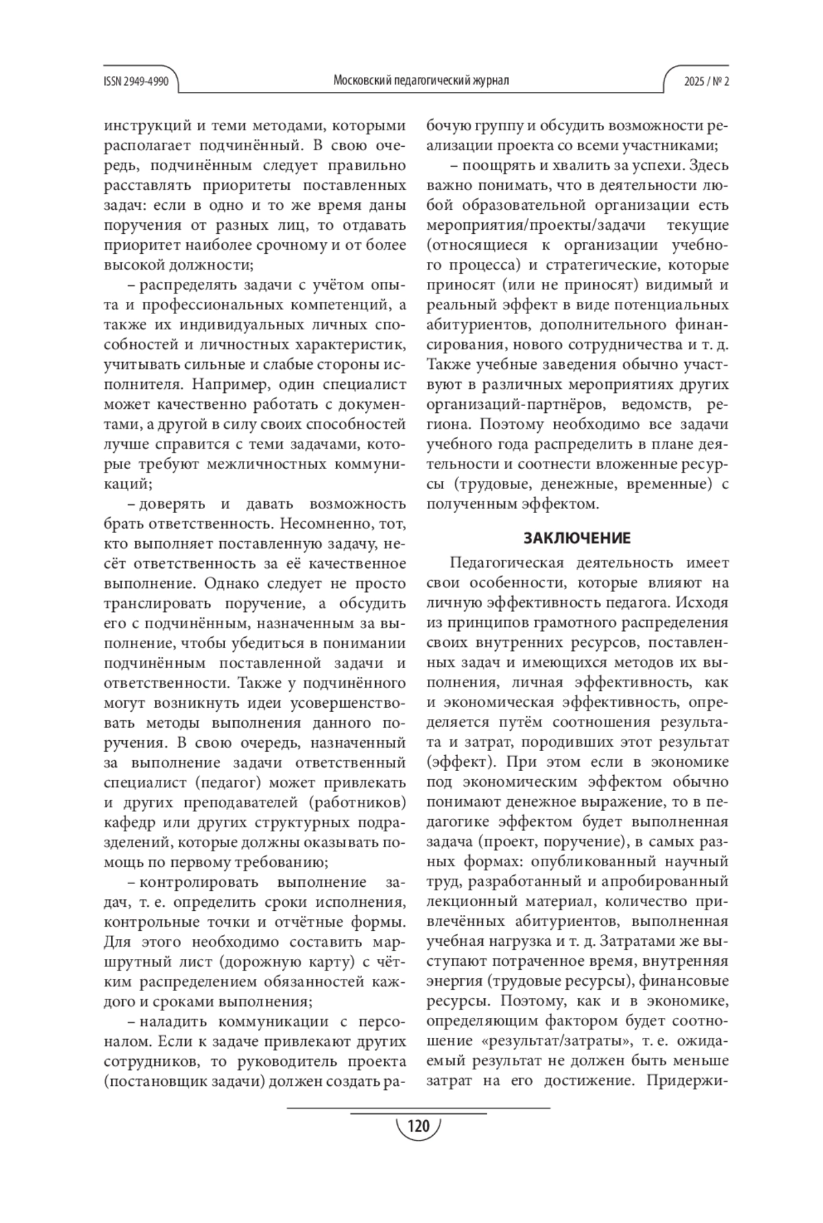 Выводы. Педагогическая деятельность имеет свои особенности, которые влияют на личную эффективность педагога. Исходя из принципов грамотного распределения своих внутренних ресурсов, поставленных задач и имеющихся методов их выполнения, личная эффективность, как и экономическая, определяется путём соотношения результата и затрат, породивших этот результат (эффект), т. е. ожидаемый результат (научный труд, проведённое мероприятие) не должен быть меньше затрат на его достижение (временных, трудовых и финансовых).