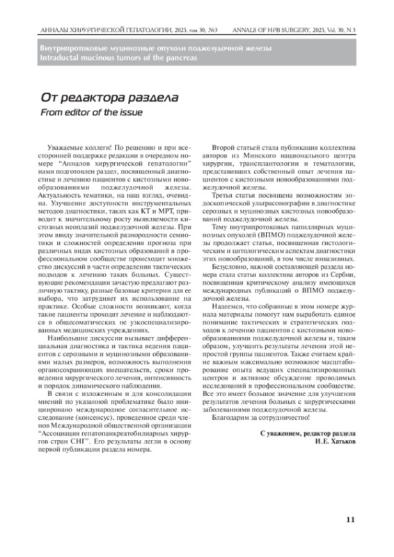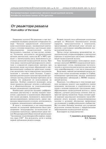 ХАТЬКОВ И. Е. ОТ РЕДАКТОРА РАЗДЕЛА // АННАЛЫ ХИРУРГИЧЕСКОЙ ГЕПАТОЛОГИИ. 2025. № 3, ТОМ 30