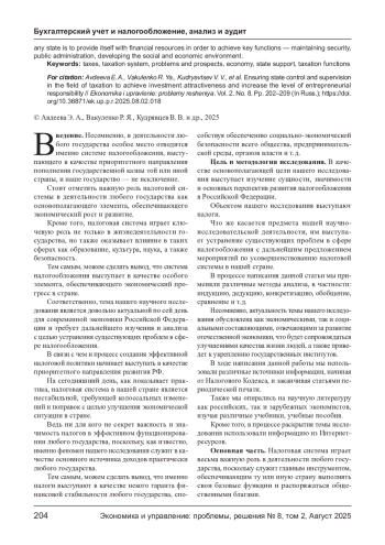 В статье исследуются особенности нормативно- правового регулирования деятельности малого и среднего бизнеса в России, а также трансформация налоговых механизмов, влияющих на функционирование предпринимательского сектора. Рассмотрены ключевые положения федерального законодательства, включая Федеральный закон № 209-ФЗ, а также региональные и муниципальные инициативы, формирующие правовую основу для развития малого предпринимательства. Особое внимание уделено анализу налоговых режимов, доступных субъектам МСП, включая упрощённую систему налогообложения, патентную систему и налог на профессиональный доход. Существенным элементом исследования выступает рассмотрение нововведений 2025 года, связанных с признанием налогоплательщиков на УСН плательщиками НДС. В работе раскрыты критерии применения освобождения, порядок использования пониженных ставок и методологические особенности исчисления налоговой базы. Сделан вывод о том, что модернизация налоговой системы усиливает институциональное значение МСП, формируя новые вызовы для налогового планирования и стратегии финансовой устойчивости. Результаты исследования подчеркивают необходимость поиска оптимального баланса между интересами государства и развитием предпринимательства.