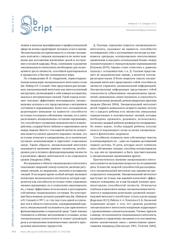 4. Аникина А. П., Барабанова М. С. Развитие эмоционального интеллекта у старших дошкольников. Наука и школа. 2020. № 3. С. 197-204. https://doi.org/10.31862/1819-463X-2020-3-197-204