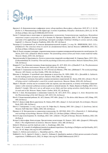 67. Фролов А. В. Феноменология в цифровую эпоху: обзор проблем. Философия и общество. 2019. № 1. С. 18-38. https://doi.org/10.30884/jfio/2019.01.02