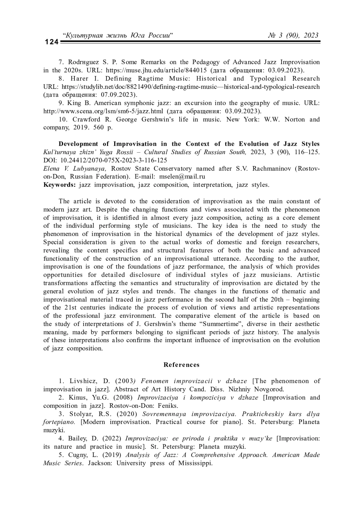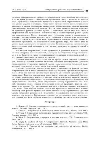 7. Rodrнguez S. P. Some Remarks on the Pedagogy of Advanced Jazz Improvisation in the 2020s. URL: https://muse.jhu.edu/article/844015 (дата обращения: 03.09.2023)