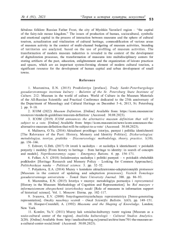 Ключевые фразы: МУЗЕЙ, культурный туризм, трансформация, культурные индустрии, блокчейн, культурно-досуговое пространство