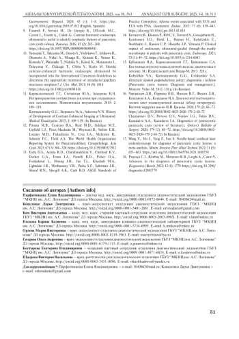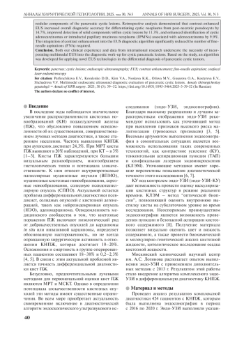 6. Al-Taee A.M., Taylor J.R. Endoscopic imaging of pancreatic cysts. Gastrointest. Endosc. Clin. N. Am. 2023; 33 (3): 583-598. DOI: 10.1016/j.giec.2023.03.005