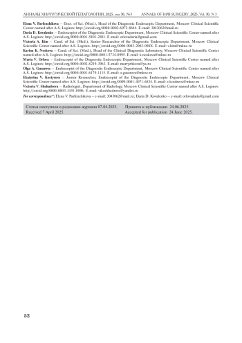 Заключение. Персонифицированный выбор оптимального метода оперативного вмешательства для удаления аденом большого сосочка двенадцатиперстной кишки в зависимости от классификационного типирования новообразования позволяет минимизировать риск послеоперационных осложнений и улучшить радикальность вмешательства.