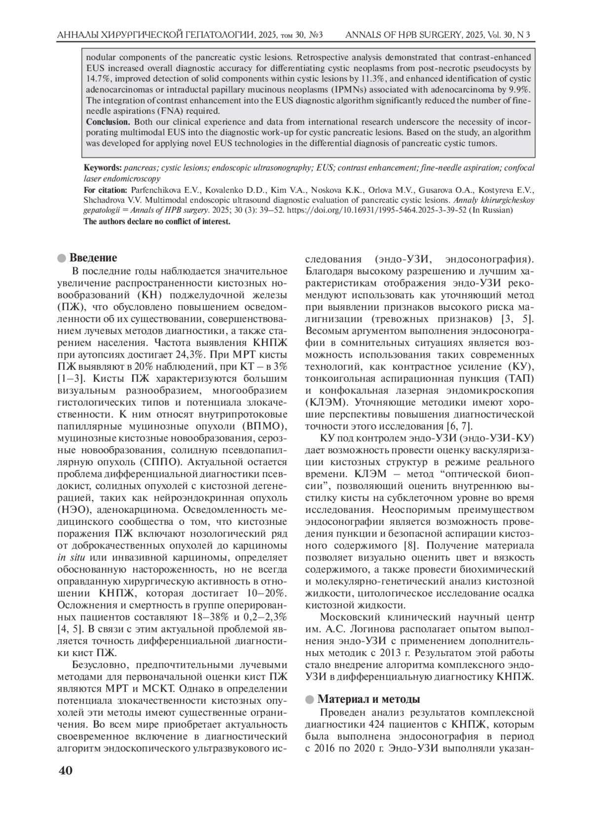 3. Wesali S., Demir M.A., Verbeke C.S., Andersson M., Bratlie S.O., Sadik R. EUS is accurate in characterizing pancreatic cystic lesions; a prospective comparison with crosssectional imaging in resected cases. Surg. Endosc. 2021; 35 (12): 6650-6659. DOI: 10.1007/s00464-020-08166-3