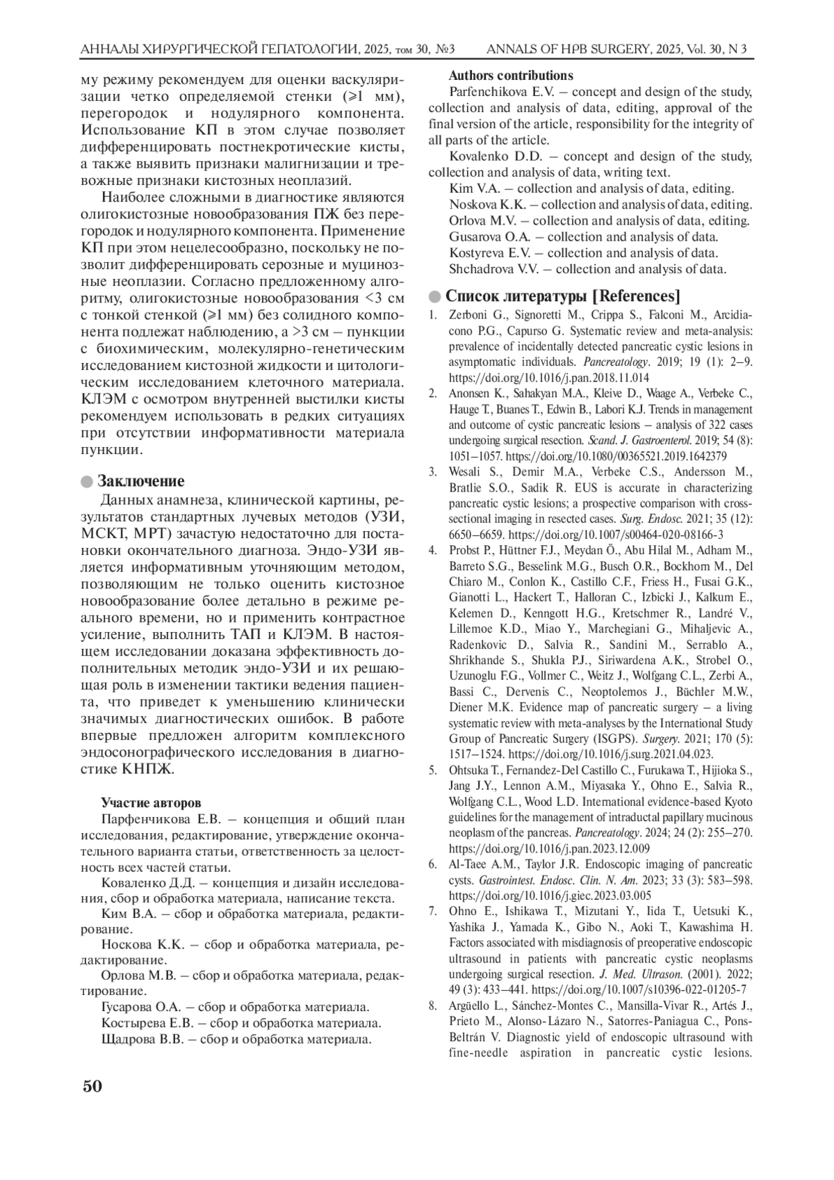 1. Zerboni G., Signoretti M., Crippa S., Falconi M., Arcidiacono P.G., Capurso G. Systematic review and meta-analysis: prevalence of incidentally detected pancreatic cystic lesions in asymptomatic individuals. Pancreatology. 2019; 19 (1): 2-9. DOI: 10.1016/j.pan.2018.11.014