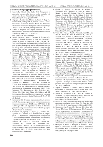 5. Солодкий В.А., Кригер А.Г., Ахаладзе Г.Г., Гоев А.А., Гончаров С.В., Горин Д.С., Загайнов В.Е., Кузнецов Н.С., Кучин Д. М., Латкина Н.В., Лысанюк М. В., Майстренко Н.А., Мартиросян Т.А., Ромащенко П.Н., Шуинова Е.А., Юкина М.Ю. Энуклеация опухолей поджелудочной железы (многоцентровое исследование). Хирургия. Журнал им. Н.И. Пирогова. 2023; 2: 13-20.