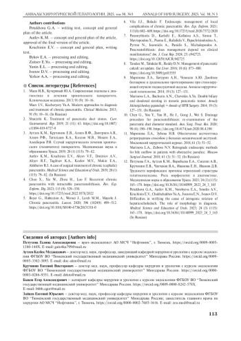 3. Аутлев К.М., Кручинин Е.В., Алиев В.Ф., Дмитриев А.В., Алиев Р.Ф., Тагильцев К.А., Козлов М.В., Мокин Е.А., Алекберов Р.И. Случай хирургического лечения хронического (головчатого) панкреатита. Медицинская наука и образование Урала. 2019; 20 (1) (115): 79-82.