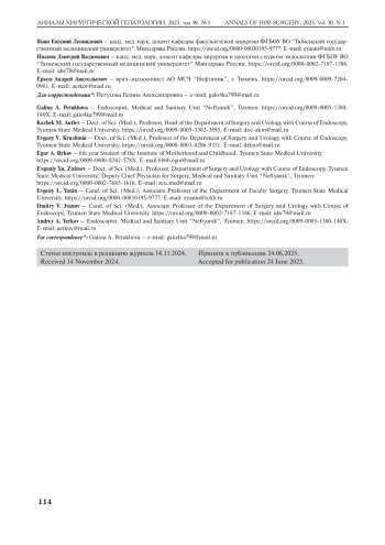 Petukhova G.A., Аutlev K.M., Vorobyeva E.A., Smolin A. V., Kruchinin E.V., Chakhchakhov Ya.A., Ivanova E.N., Ivanov D.V. Difficulties in verifying the cause of iatrogenic stricture of hepaticocholedoch. The role of morphology in diagnosis. Medical Science and Education of Urals. 2023; 24 (3) (115): 165-170. (In Russian).