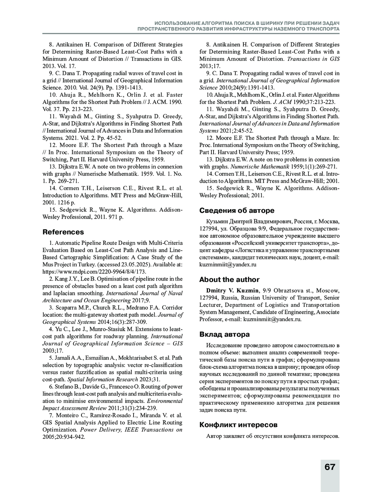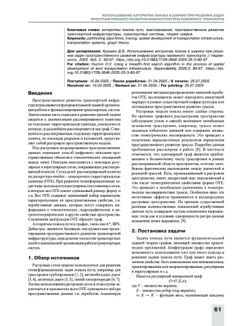 Статья: Использование алгоритма поиска в ширину при решении задач пространственного развития инфраструктуры наземного транспорта (2025)