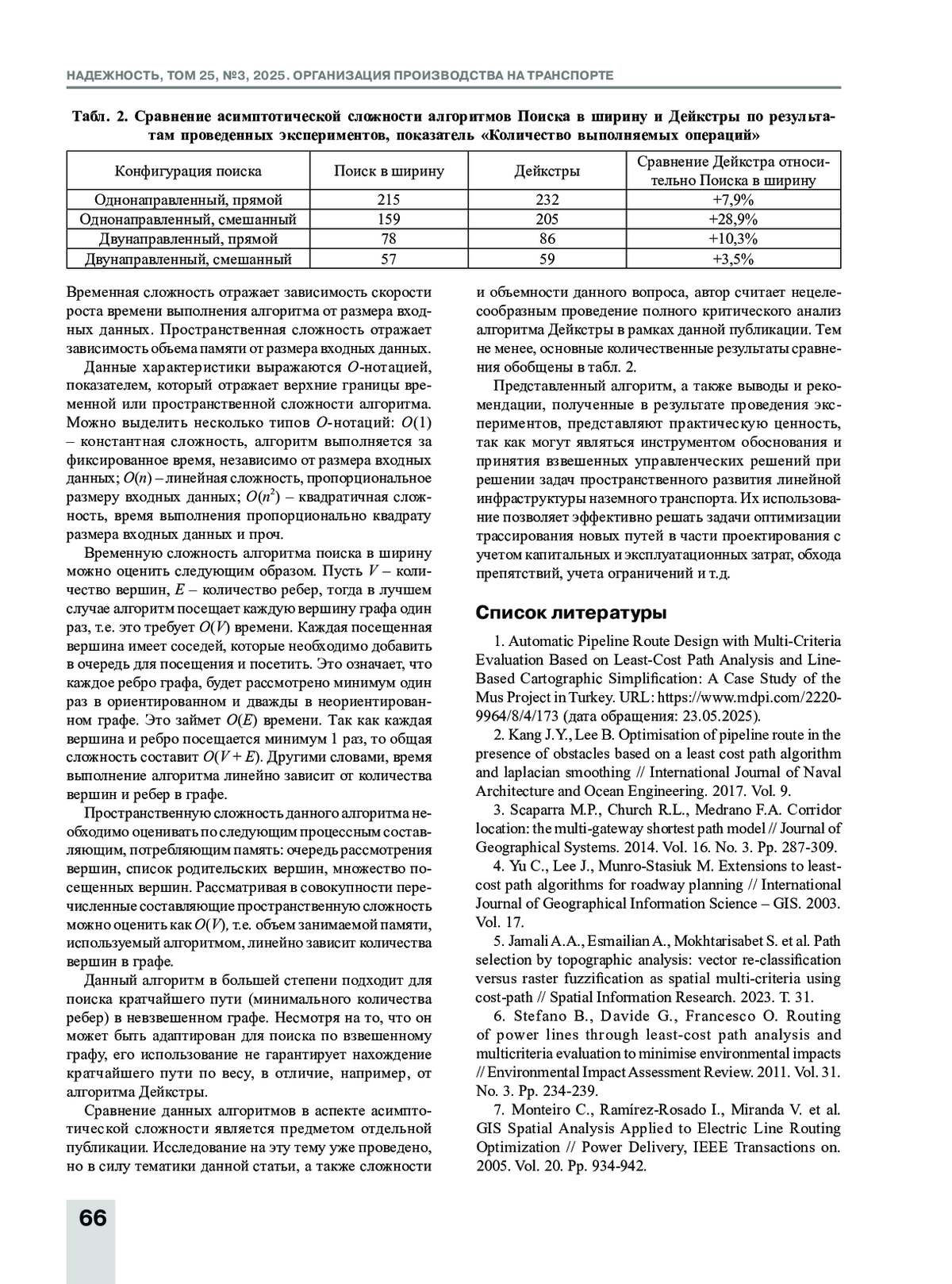 КУЗЬМИН Д. В. ИСПОЛЬЗОВАНИЕ АЛГОРИТМА ПОИСКА В ШИРИНУ ПРИ РЕШЕНИИ ЗАДАЧ ПРОСТРАНСТВЕННОГО РАЗВИТИЯ ИНФРАСТРУКТУРЫ НАЗЕМНОГО ТРАНСПОРТА // НАДЕЖНОСТЬ. 2025. ТОМ 25, № 3