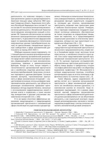 8. Молчанова Т.В. Организованная преступность в сфере экономической деятельности: состояние и тенденции развития / Т.В. Молчанова. // Вестник Московского государственного областного университета. Серия: Юриспруденция. - 2021. - № 3. - С. 111-117. DOI: 10.18384/2310-6794-2021-3-111-117 EDN: WZCYON