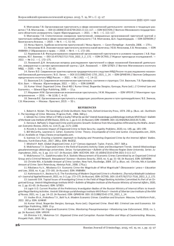 17. Мацкевич И.М. Организованная экономическая преступность / И.М. Мацкевич. // Мониторинг правоприменения. - 2016. - № 1(18). С. 4-10. EDN: VPFJYP