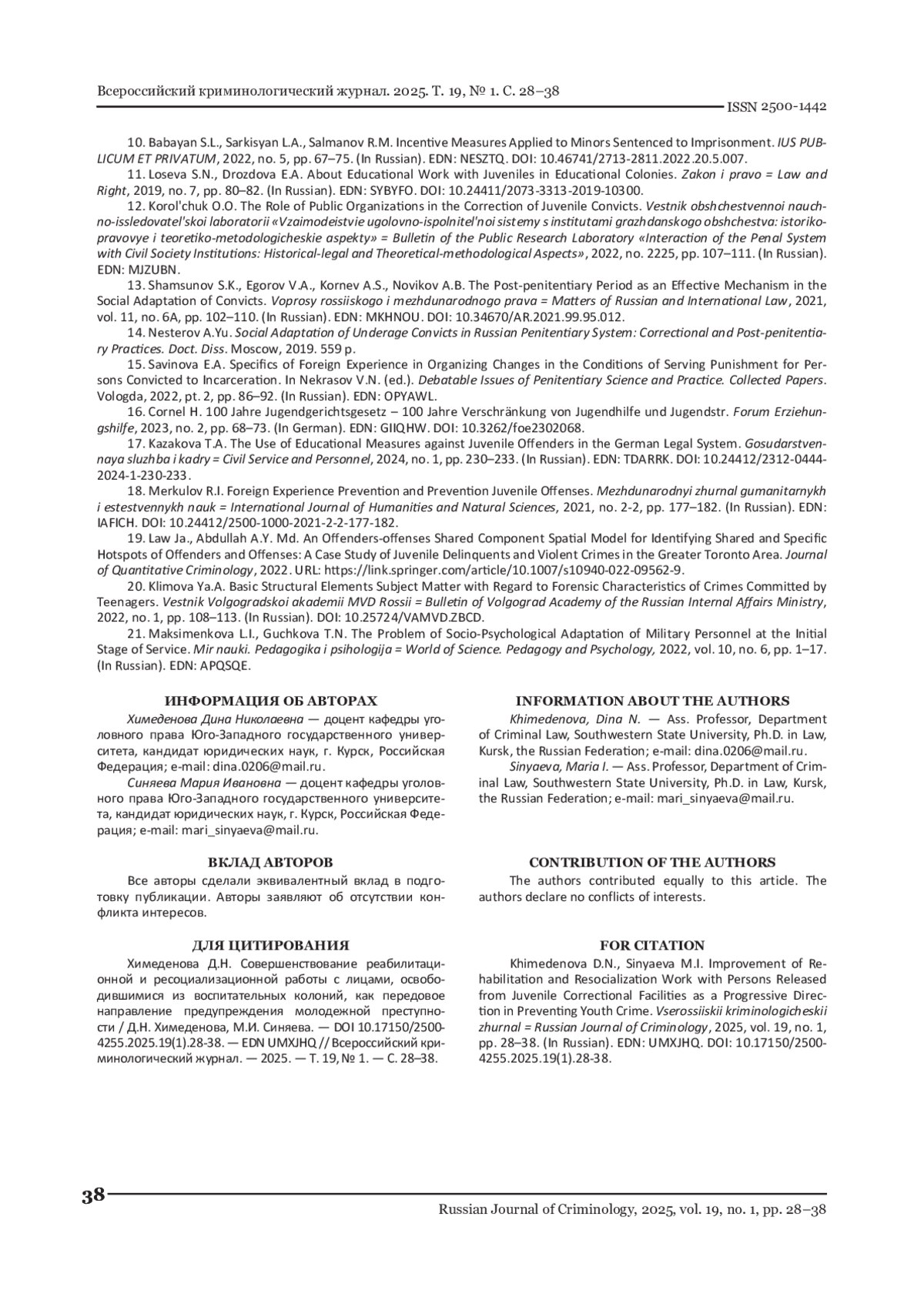18. Меркулов Р.И. Зарубежный опыт соблюдения и соблюдения правонарушений среди несовершеннолетних / Р.И. Меркулов. // Международный журнал гуманитарных и медицинских наук. - 2021. - № 2-2. - С. 177-182. DOI: 10.24412/2500-1000-2021-2-2-177-182 EDN: IAFICH
