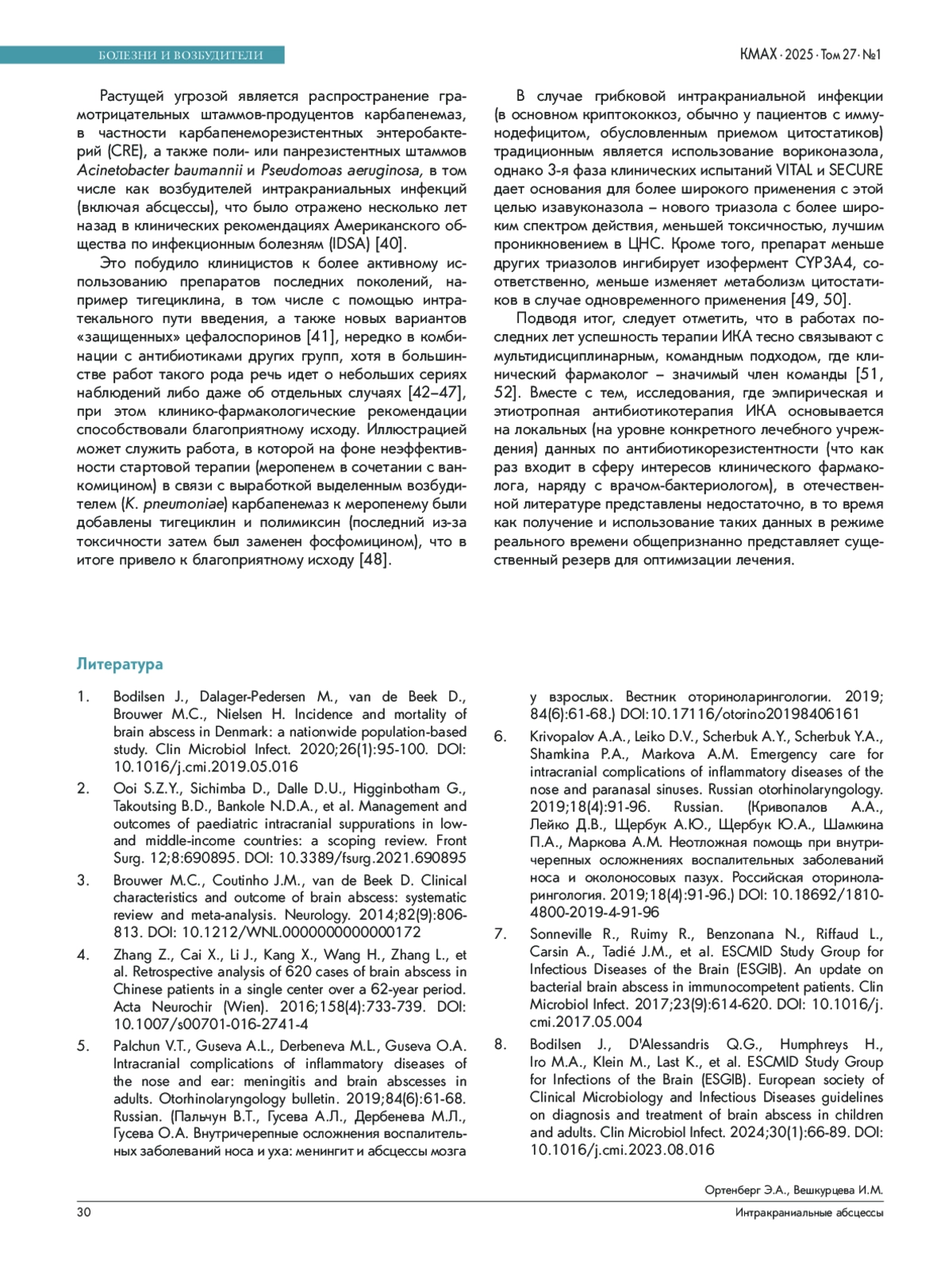 Статья: Интракраниальные абсцессы: некоторые клинико-фармакологические аспекты мультидисциплинарного подхода (2025)