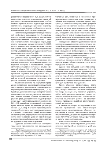 16. Дяблова Ю.Л. Возможность использования дерматоглифики в криминалистическом изучении личности / Ю.Л. Дяблова, Д.С. Куршев. // Известия Тульского государственного университета. Экономические и юридические науки. - 2020. - № 2. - С. 81-89. EDN: KOWOID