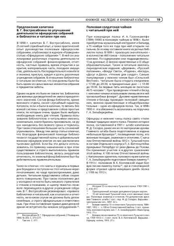 Ключевые фразы: культурология, офицерская библиотека, правила библиотеки, культурная традиция, полковая история, КНИЖНАЯ КУЛЬТУРА, история военно-библиотечного дела