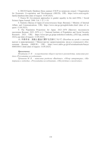 9. The Population Projections for Japan: 2023-2070 [Прогноз численности населения Японии: 2023-2070 гг.] // National Institute of Population and Social Security Research. 2023. URL: https://www.ipss.go.jp/pp-zenkoku/e/zenkoku_e2023/pp_zenkoku 2023e.asp (date of request: 13.09.2025).