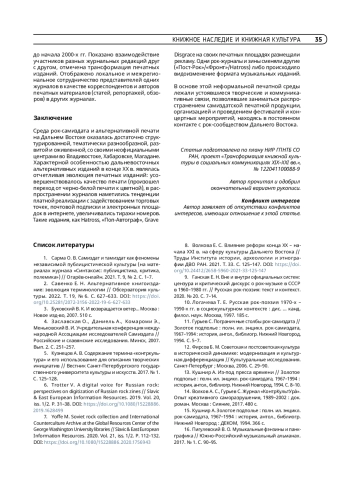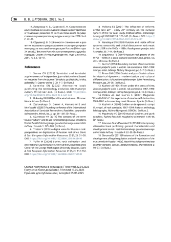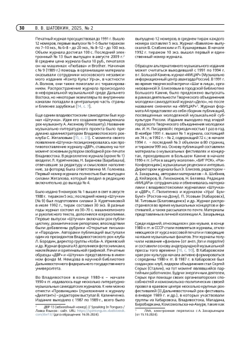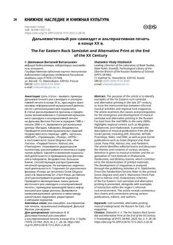 ШАТОВКИН В. В. ДАЛЬНЕВОСТОЧНЫЙ РОК-САМИЗДАТ И АЛЬТЕРНАТИВНАЯ ПЕЧАТЬ В КОНЦЕ ХХ В. // ТРУДЫ ГПНТБ СО РАН. 2025. № 2