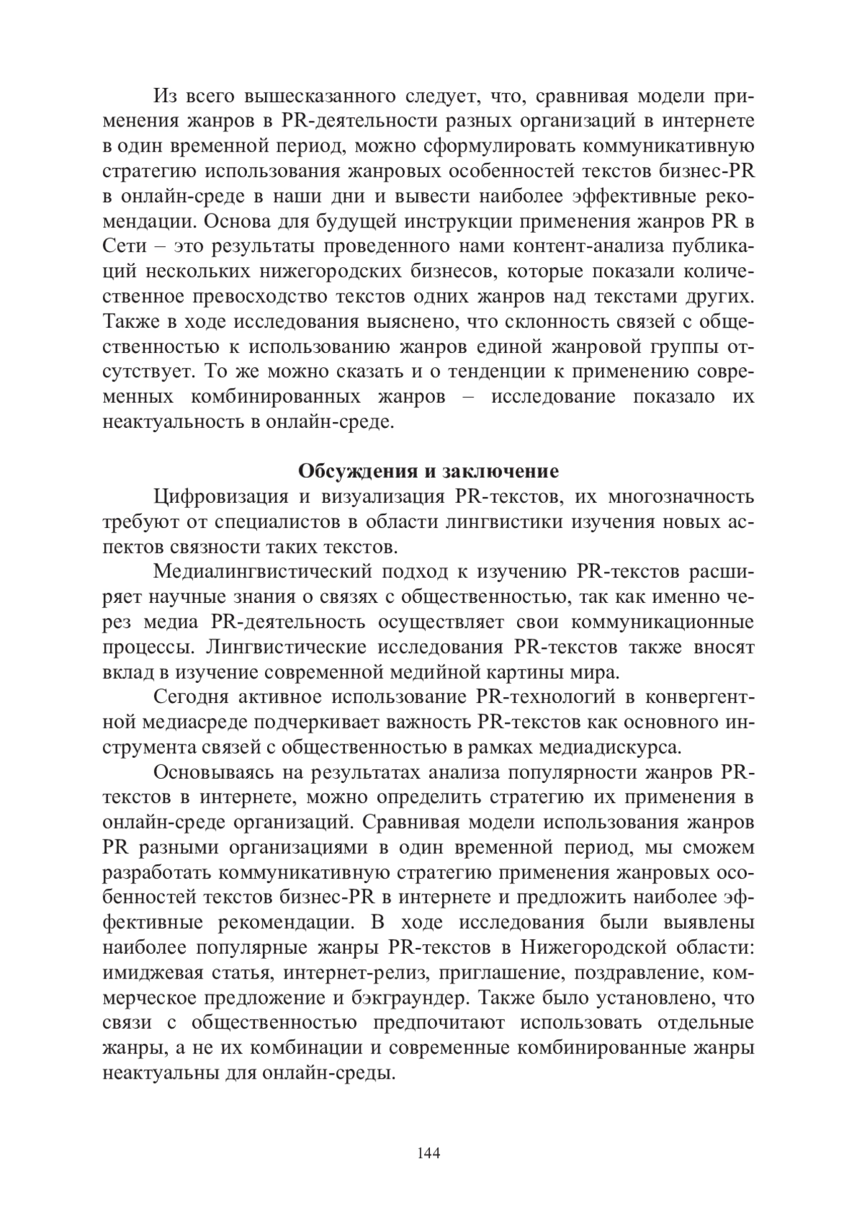 13. Никитин А. В., Орлова А. В. Жанровая типология PR-текстов коммерческого дискурса в интернет-пространстве // Технологии социально-гуманитарных исследований. 2025. № 1 (9). С. 116-126. EDN: DNOXHO