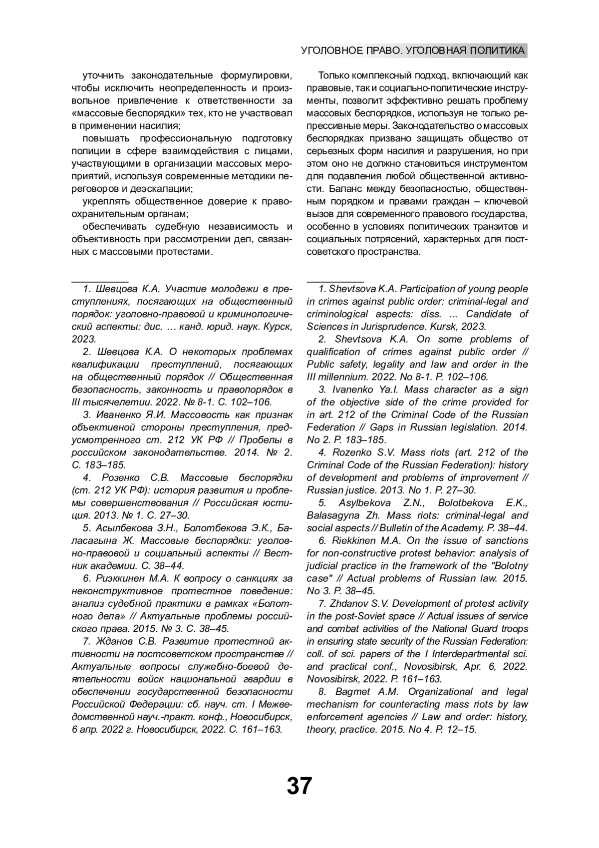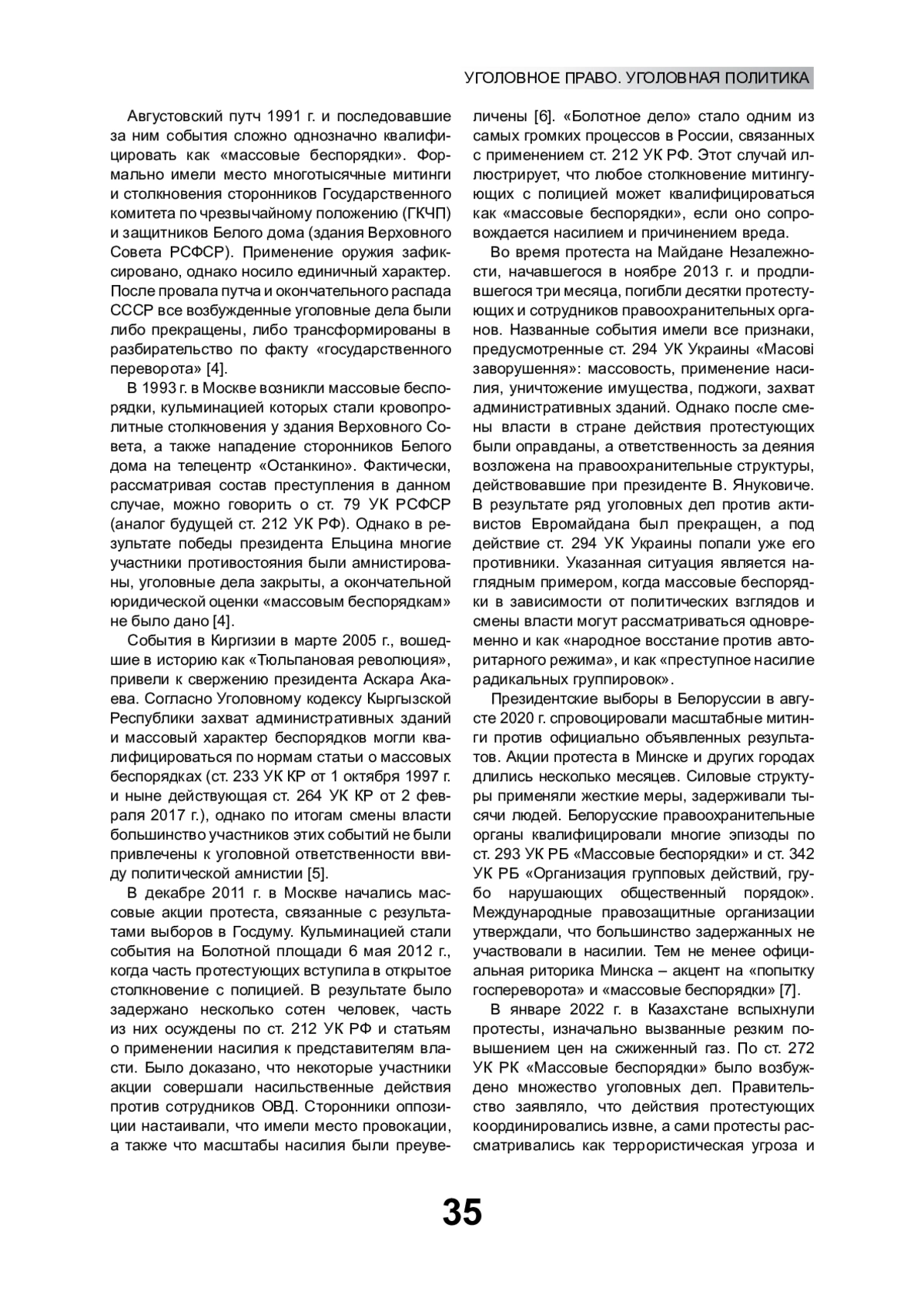 Ключевые фразы: МАССОВЫЕ БЕСПОРЯДКИ, правонарушители, правовая оценка, постсоветское пространство, уголовное законодательство, правовые критерии