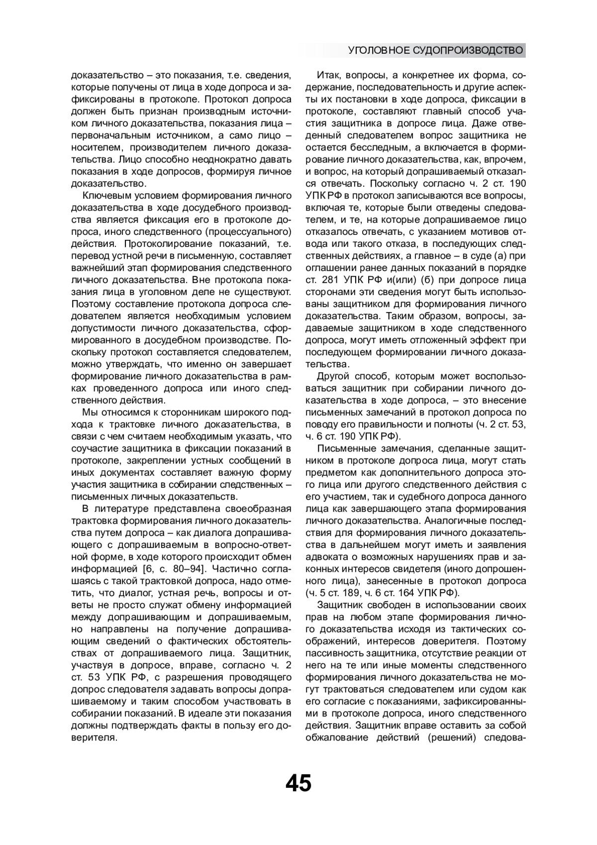 9. Центров Е.Е. Наводящий вопрос и пределы использования информации на допросе // Российская юстиция. 2013. № 5.