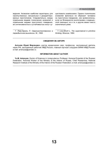 Автор (ы): АНТОНЯН ЮРИЙ МИРАНОВИЧ
