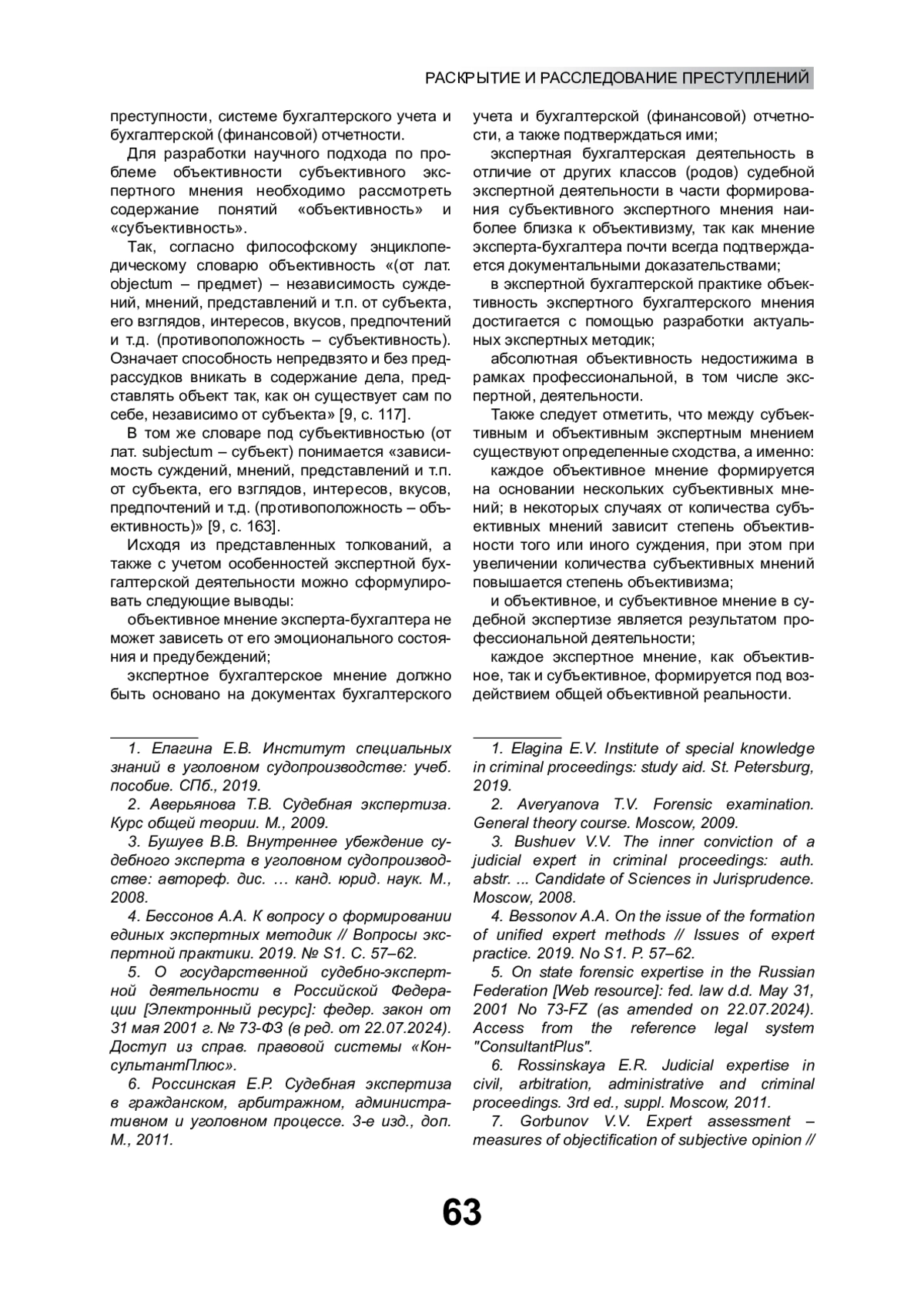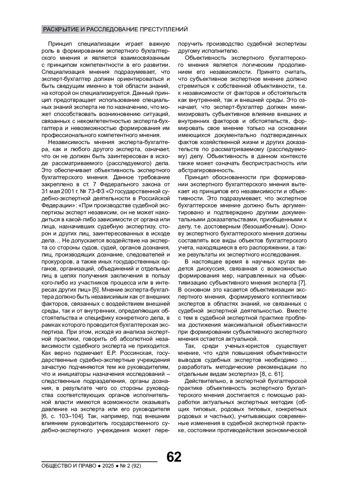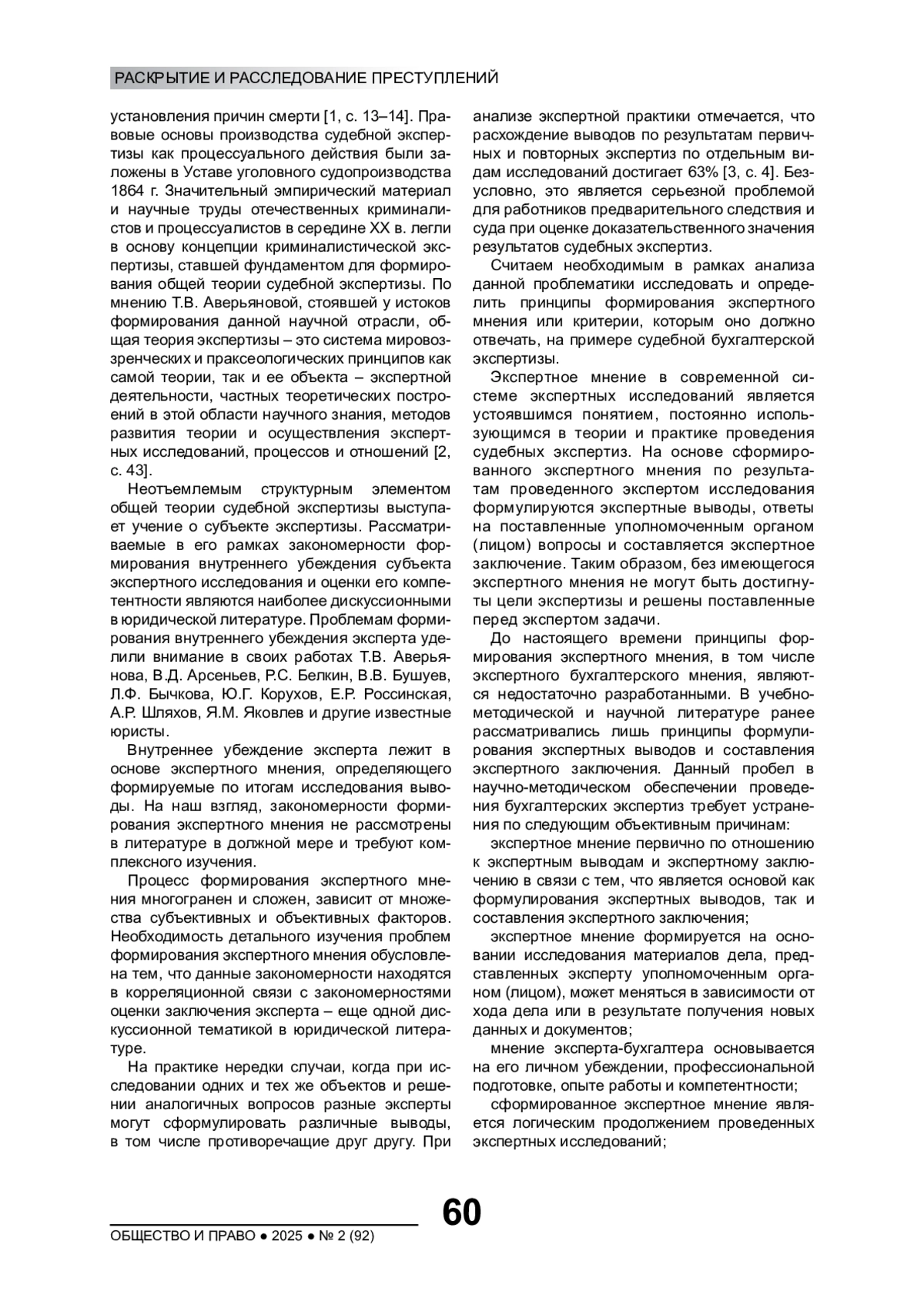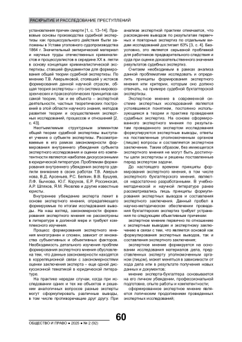 Статья: ОБЪЕКТИВНОСТЬ И СУБЪЕКТИВНОСТЬ ЭКСПЕРТНОГО МНЕНИЯ НА ПРИМЕРЕ СУДЕБНОЙ БУХГАЛТЕРСКОЙ ЭКСПЕРТИЗЫ (2025)