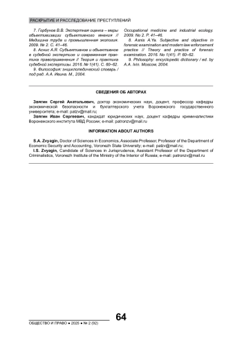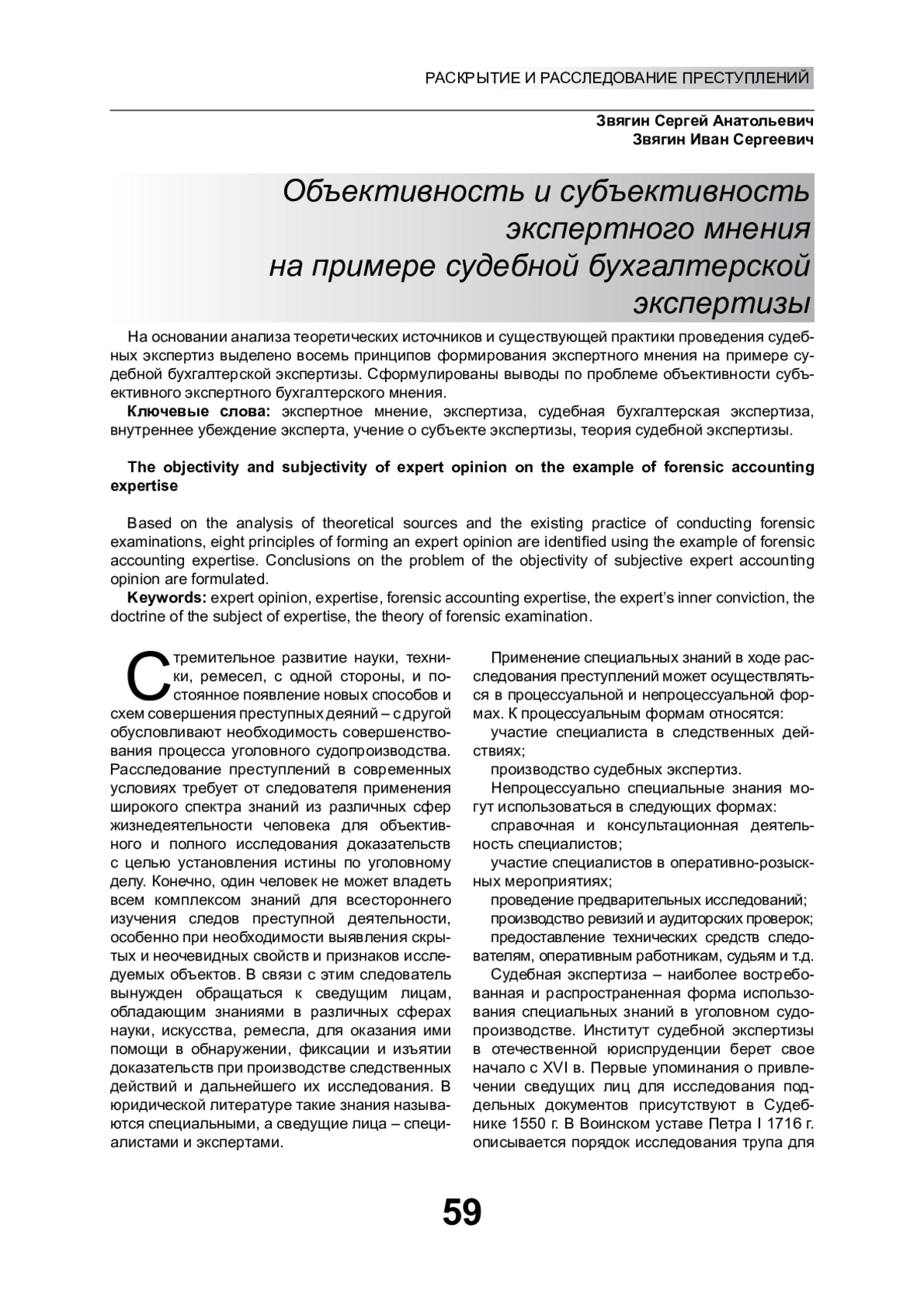 ЗВЯГИН С. А., ЗВЯГИН И. С. ОБЪЕКТИВНОСТЬ И СУБЪЕКТИВНОСТЬ ЭКСПЕРТНОГО МНЕНИЯ НА ПРИМЕРЕ СУДЕБНОЙ БУХГАЛТЕРСКОЙ ЭКСПЕРТИЗЫ // ОБЩЕСТВО И ПРАВО. 2025. № 2 (92)