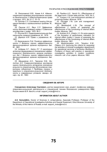 24. Андреев Н.Г., Хейло Л.Г. О некоторых аспектах формирования показателей эффективности деятельности органов внутренних дел // Вопросы оценки эффективности функционирования органов внутренних дел. М., 1981.